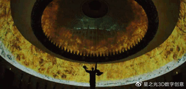 莫斯科的衛國戰爭博物館,3D Mapping展示了博物館的巨型圓頂作為畫(huà)布,“勝利之路”,通過(guò)全息影像的形式展示了勝利的衛國戰爭70周年。