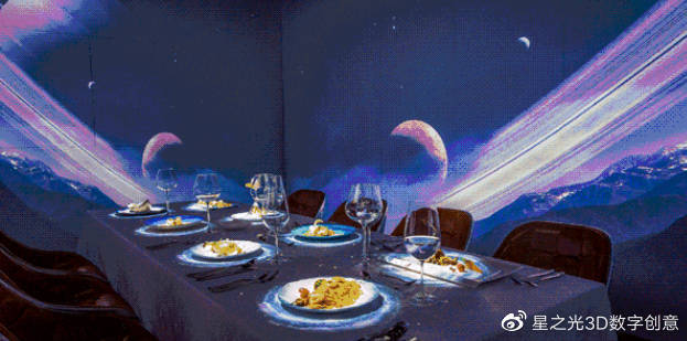 3D全息餐廳是一家360度的高科技餐廳,環(huán)境隨著(zhù)食物的變化而變化,每一種食物都能給人一種獨特的感覺(jué)。