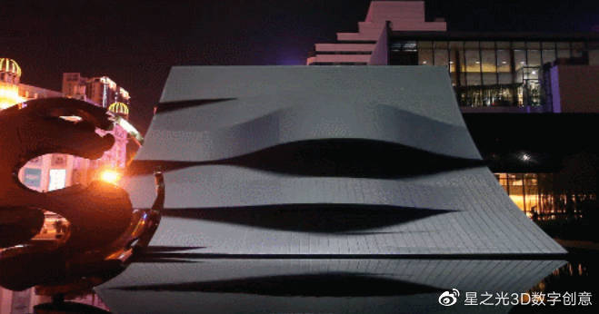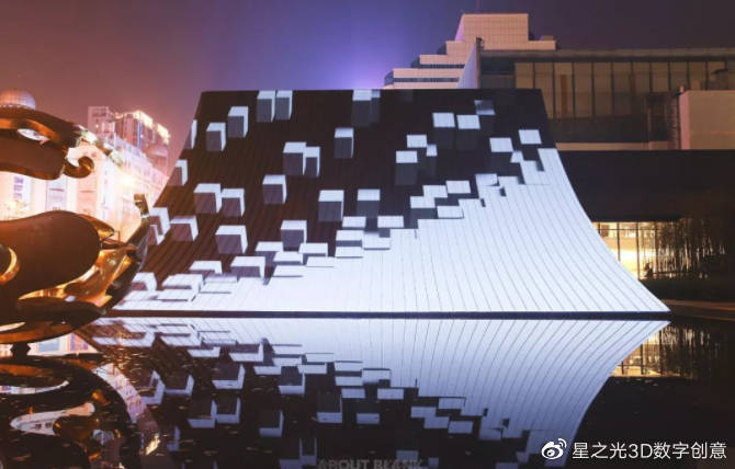 “暮色量子”的光影表演是以現代都市美學(xué)的視角為基礎,以建筑的概念設計為基礎。