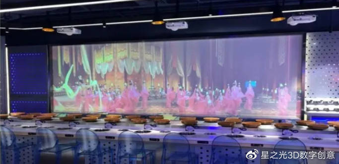 在用餐空間方面,全息5D光影餐廳采用數碼投影技術(shù),將傳統的餐飲空間變成數碼主題場(chǎng)景,使消費者在進(jìn)入餐廳后,可以親身體驗墻壁投影給消費者的視覺(jué)震撼。