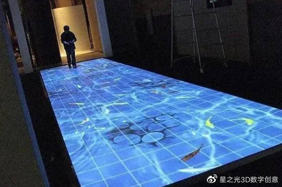 地面互動(dòng)一般是以地面為載體,地面上設置互動(dòng)感應屏、感應磚,把設置好的投射光線(xiàn)投射到地面,產(chǎn)生互動(dòng)效果,主要是利用人的雙腿,在地面上形成互動(dòng),產(chǎn)生獨特的互動(dòng)效果。