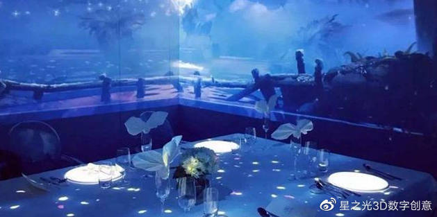 每一家餐廳的靜謐時(shí)場(chǎng)景都是可以定制的,可以是沉浸式的海底世界,也可以是沉浸式的花海、沉浸式森林等等,可以按照客人的喜好,在不同的節日期間進(jìn)行切換。